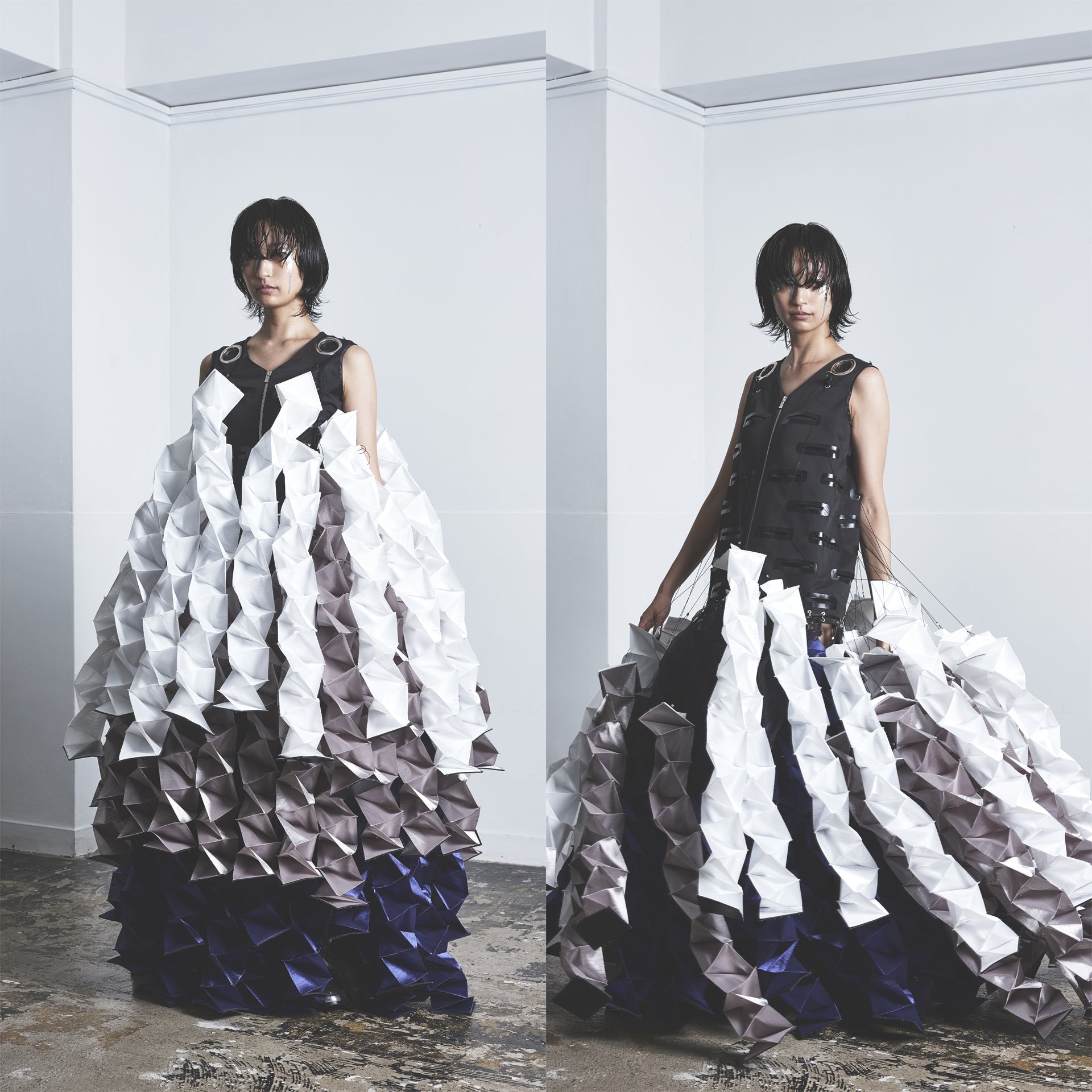 自身のパタンナー出身を活かした、ギミックのあるパターンテクニックを用いたデザインが特徴的で、トランスフォーム(変身)する服をコンセプトとしたレディスウエア、ユニセックスウエア、バッグ、レザーグッズなどを展開。Graduating from a fashion design school, I began my career as a pattern maker. I launched an apparel brand, CHIDORI, after gaining practical experiences in designing, pattern making, and production management while working for several manufacturers.