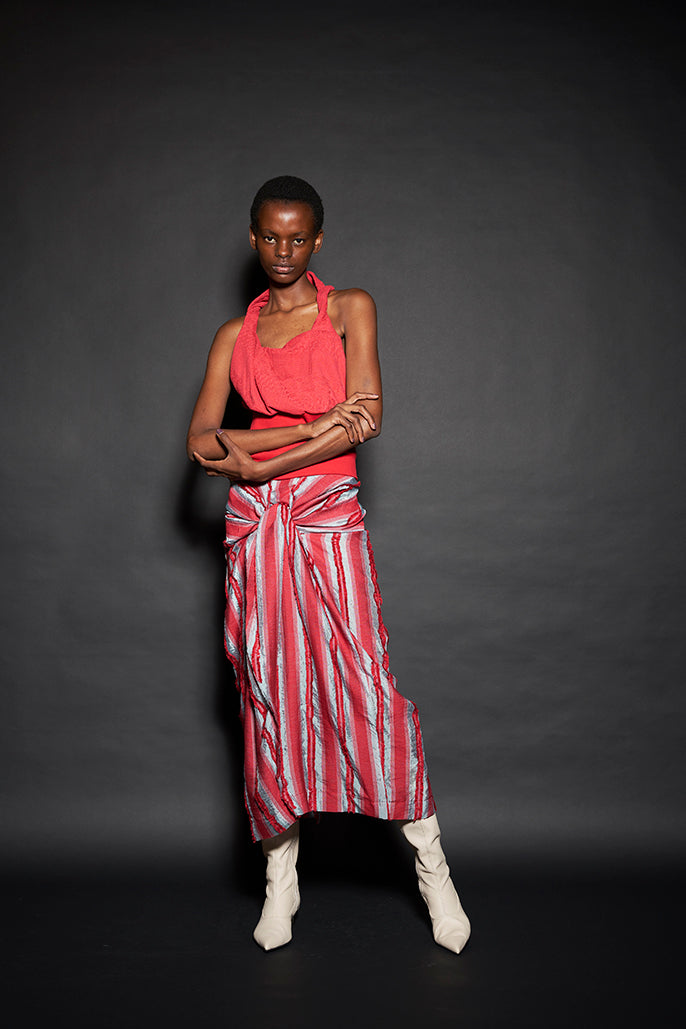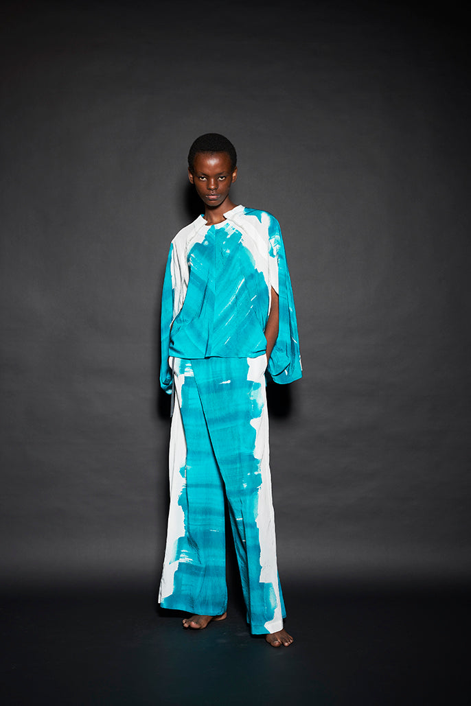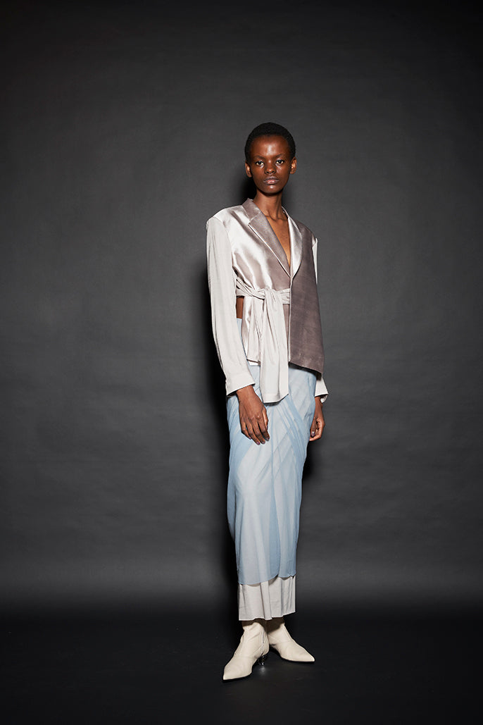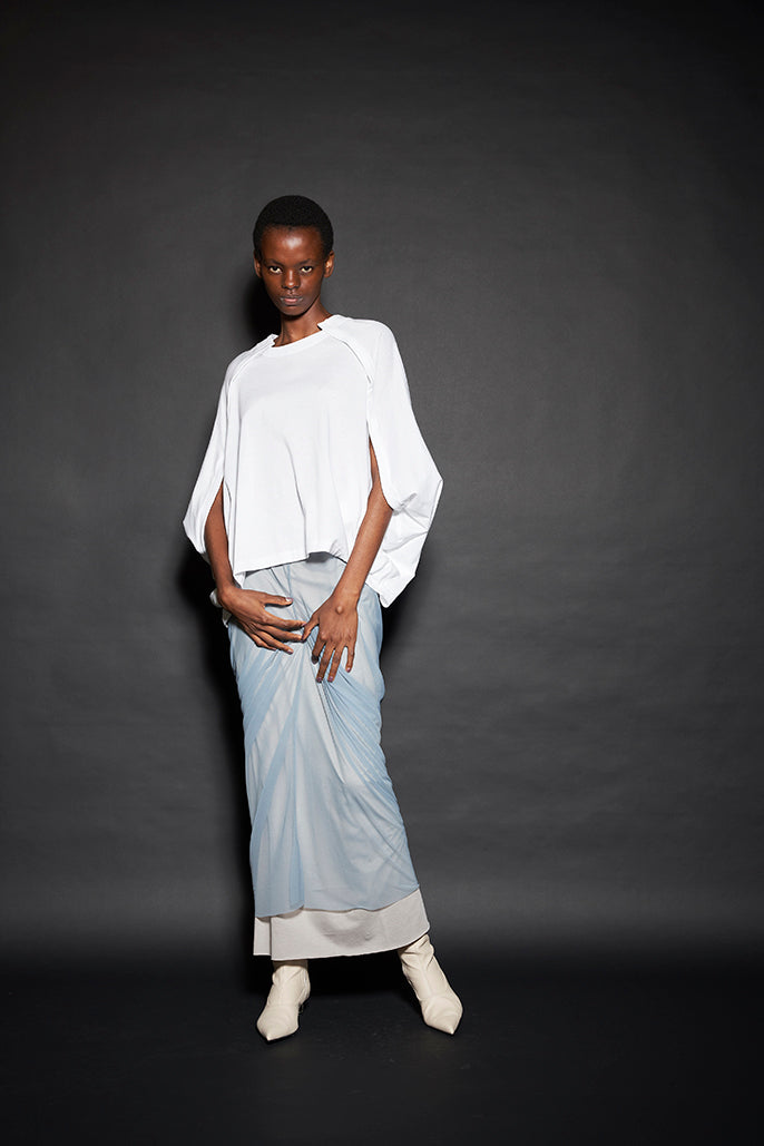 “Figure”と題された今回のコレクションは、これまでの私たちのコレクションから想起されるdivkaらしさというものを、どのようにして、また、どのくらい更新することができるのかという問いから始まりました。私たちは、これまでのdivkaの服作りの方法に新しい発想を加えることでこれらの問いに答えようとしました。
