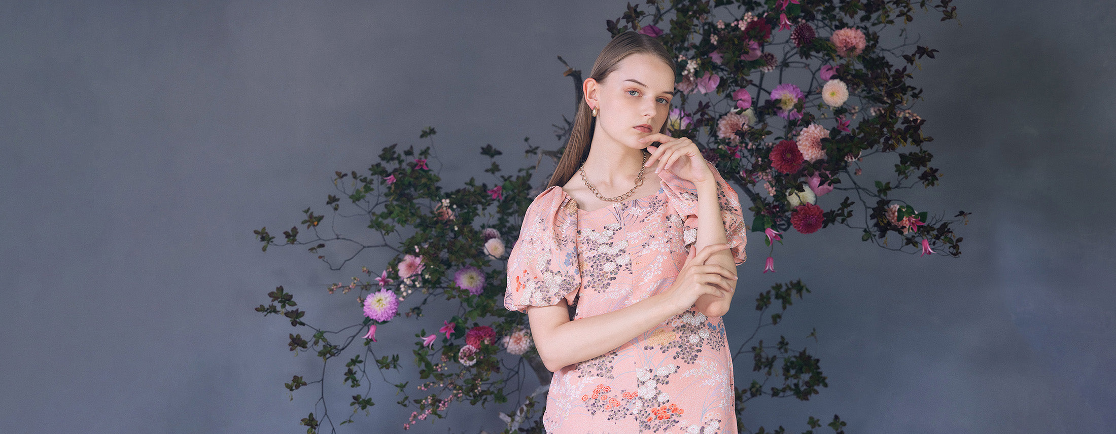 “趣味趣向(SYU)、流行(RYU)をリスタイル(RE)する”という意味を込めて2018年に誕生しました。日本の伝統や文化をモチーフに、舞踊家としてのルーツを持つデザイナーならではの感性が融合し、着る人本来の美しさを引き立てるデザインへと昇華。その繊細なディテールやテキスタイルは、日本の職人による丁寧な手仕事によって表現されています。
